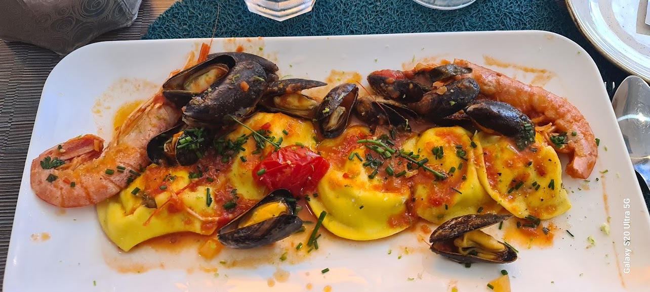 Un service très agréable, sourire, amabilité, tout y était. Avec une pointe de complicité et d'humour bien agréables de la part des patrons. Repas excellents avec des raviolis aux moules et gambas, et pour suivre un tiramisu maison excellent. Le tout arrosé d'un petit vin Sarde excellent. Une addition très honnête au vu de la qualité du service. Aux environs de 50 € pour 2.. Domage que ce soit si loin de chez nous.... car nous irions souvent...