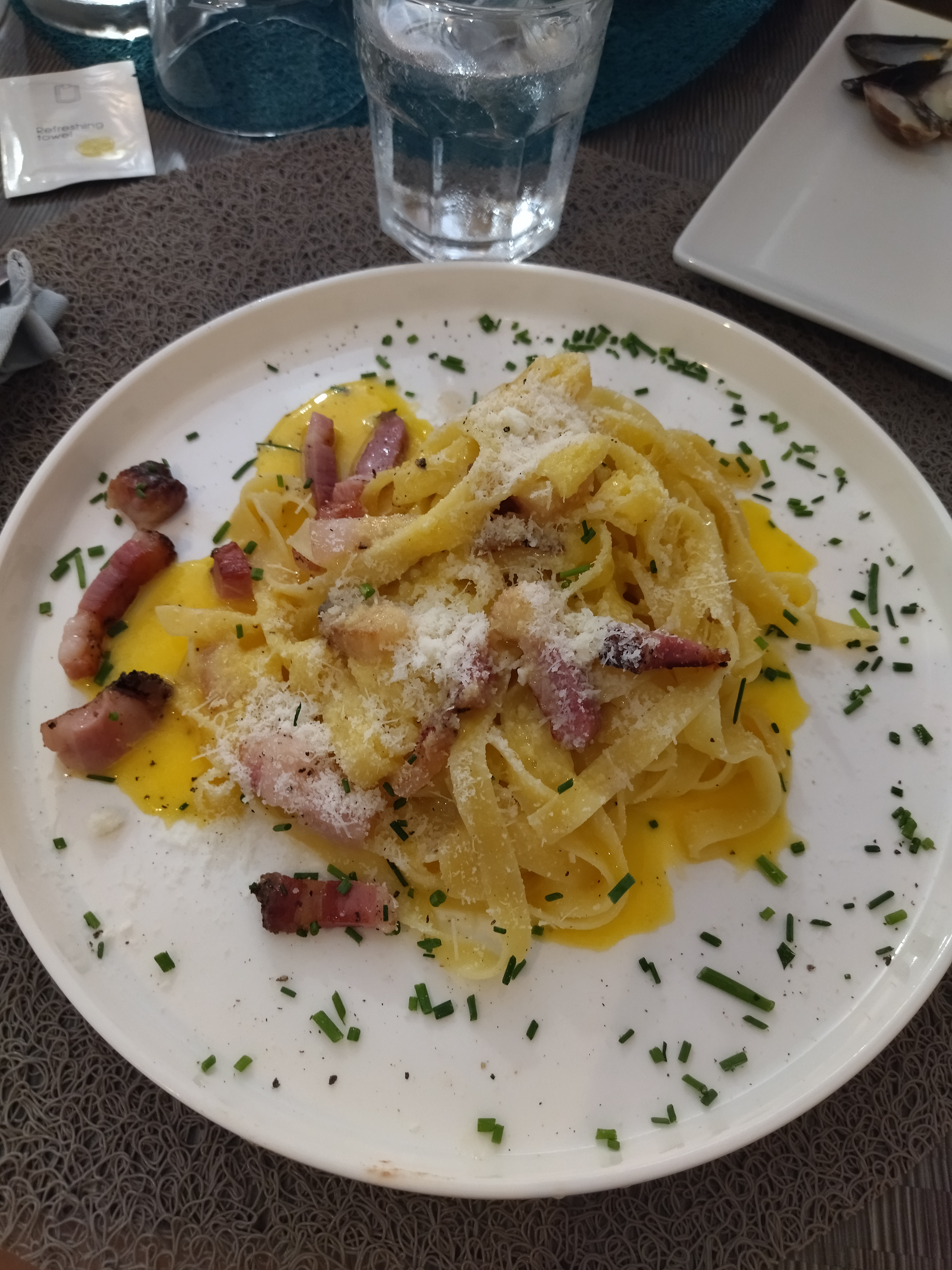 meilleur vrai Carbo de Perpignan petit resto italien tenue par un chef sarde juste parfait belle découverte !!!, et que se soit la patronne ou le chef très sympathique et souriant 😁 je suis juste deg jai oublié de faire des photos mais je recommande les yeux fermer